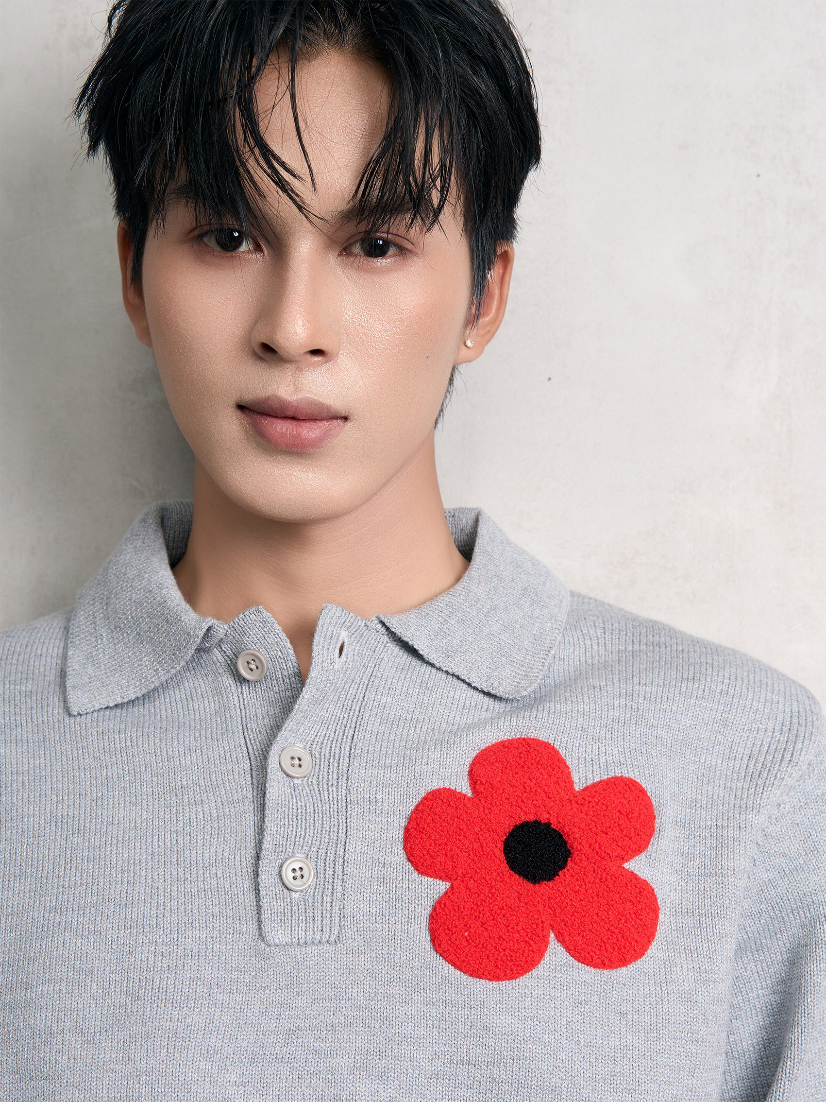 GREY DAISY EMBROIDERED KNIT POLO